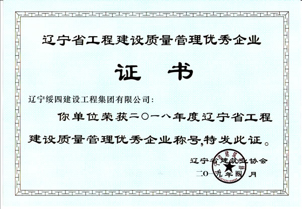 遼寧省工程建設(shè)質(zhì)量優(yōu)秀企業(yè)