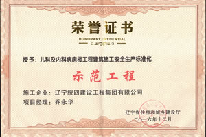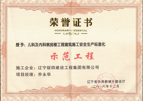 兒科及內(nèi)科病房標(biāo)準(zhǔn)化工程榮譽(yù)證書