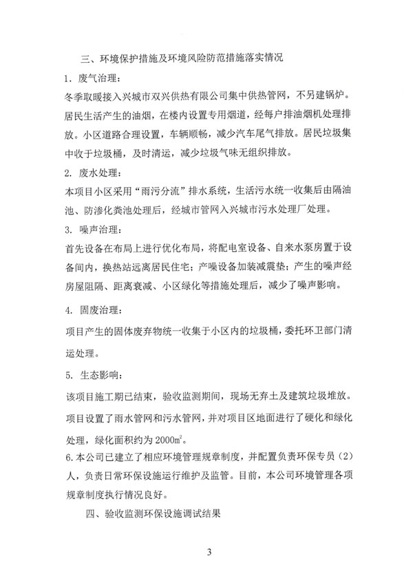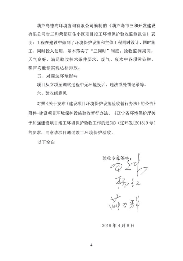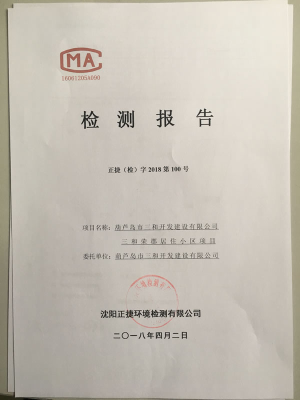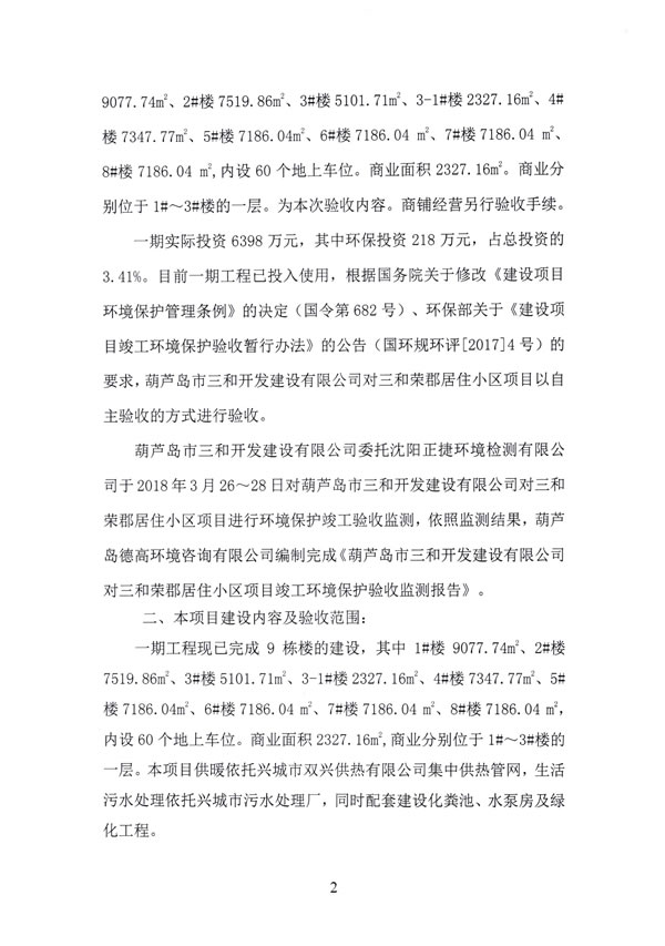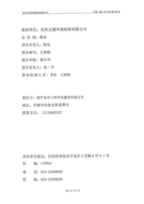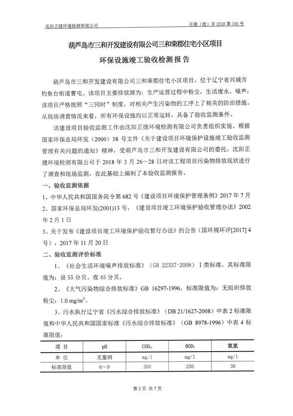 。14)沈陽正捷環(huán)境檢測有限公司《葫蘆島市三和開發(fā)建設(shè)有限公司三和榮郡居住小區(qū)項(xiàng)目環(huán)保設(shè)施竣工驗(yàn)收檢測報(bào)告》,2018年4月2日。