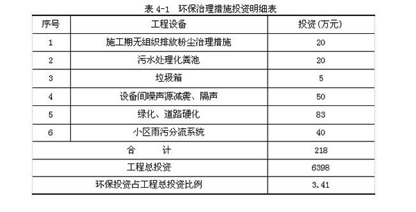 環(huán)保治理措施投資明細(xì)見表4-1。