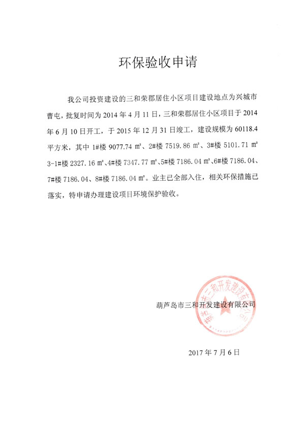 葫蘆島市三和開發(fā)建設(shè)有限公司三和榮郡居住小區(qū)項(xiàng)目