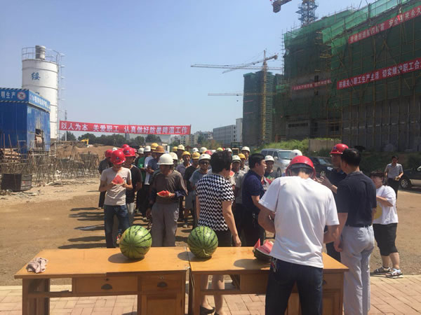 連日來(lái),我市氣溫不斷攀升,嚴(yán)重影響著一線職工的身體健康和工作效率。2018年8月3日,市總工會(huì)到我集團(tuán)三和恬園住宅小區(qū)工程項(xiàng)目開(kāi)展“送清涼”活動(dòng),為在高溫中奮戰(zhàn)的勞動(dòng)者帶來(lái)一絲清涼。