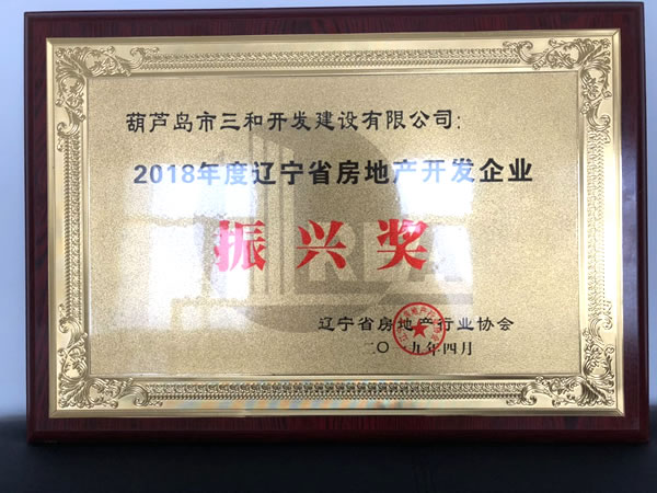 恭賀三和開(kāi)發(fā)榮獲2018年度遼寧省房地產(chǎn)開(kāi)發(fā)企業(yè)振興獎(jiǎng)