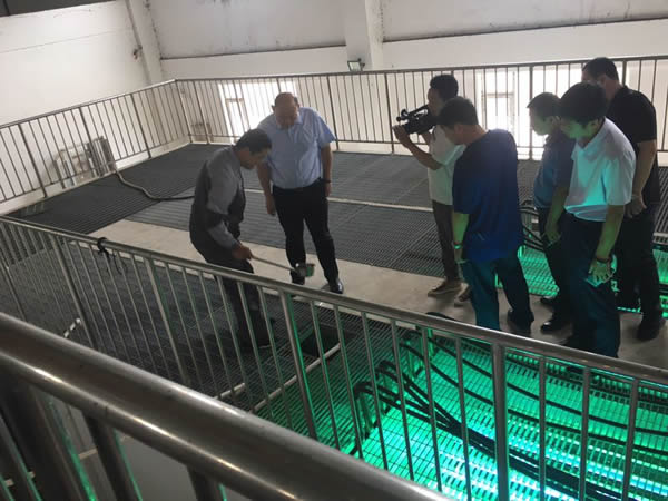 隨后一行領(lǐng)導(dǎo)來(lái)到我廠深度處理間出水口,工作人員現(xiàn)場(chǎng)采集水樣,出水清澈。領(lǐng)導(dǎo)詳細(xì)詢(xún)問(wèn)了各項(xiàng)指標(biāo)情況,綏中縣污水處理廠出水執(zhí)行的一級(jí)A標(biāo)準(zhǔn),出水穩(wěn)定達(dá)標(biāo),運(yùn)行設(shè)施、在線數(shù)據(jù)正常,各項(xiàng)指標(biāo)達(dá)標(biāo)限值COD≤50mg/L、氨氮≤5(8)mg/L、總磷≤0.5mg/L、總氮≤15mg/L,縣領(lǐng)導(dǎo)對(duì)污水處理廠設(shè)施運(yùn)行情況、進(jìn)出水在線數(shù)據(jù)及出水水質(zhì)情況給予了充分肯定。