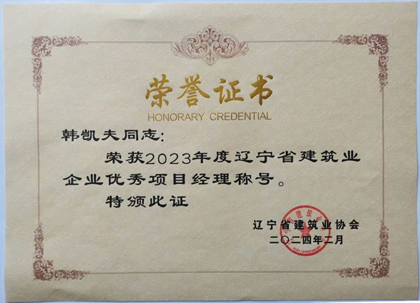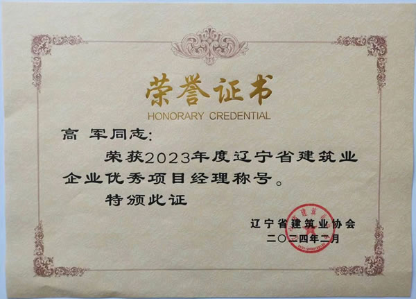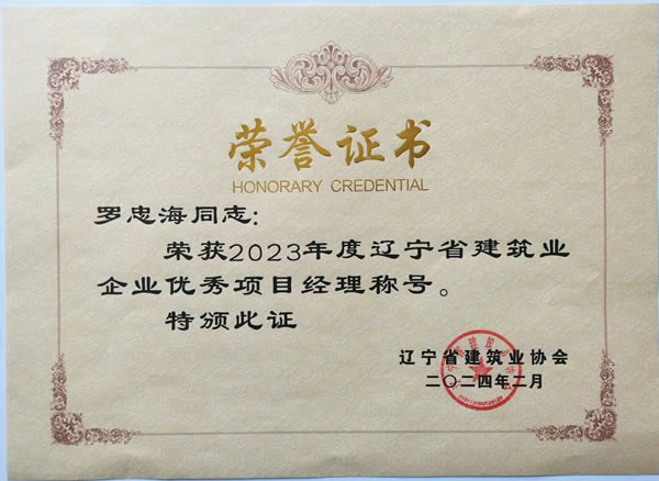 遼寧綏四建設(shè)工程集團(tuán)有限公司的高軍、羅忠海、韓凱夫三名同志被評(píng)為2023年度遼寧省建筑業(yè)企業(yè)優(yōu)秀項(xiàng)目經(jīng)理,并于2024年5月獲得遼寧省建筑業(yè)協(xié)會(huì)頒發(fā)的榮譽(yù)證書(shū)。