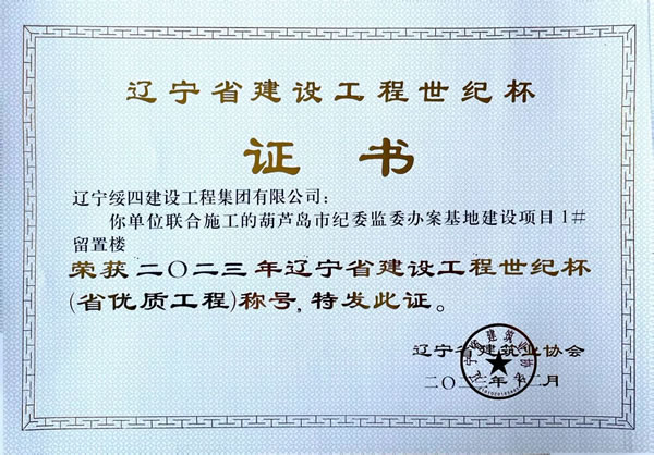 葫蘆島市紀(jì)委監(jiān)委辦案基地建設(shè)項(xiàng)目1#留置樓 榮獲2023年遼寧省建設(shè)工程世紀(jì)杯(省優(yōu)質(zhì)工程)稱號(hào)